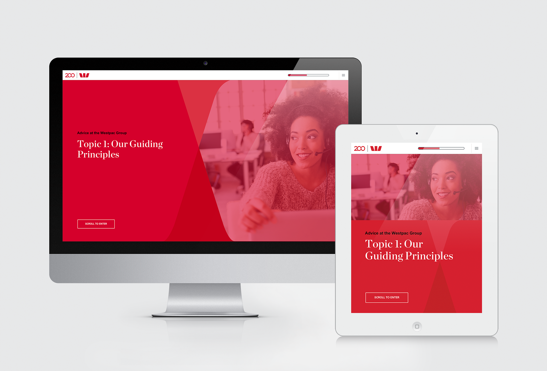 I created a visual solution that was not only recognisable as a Westpac product, but that also enabled the learner to empathise with the customer to help them understand just how important the advice they give is to customers’ lives.